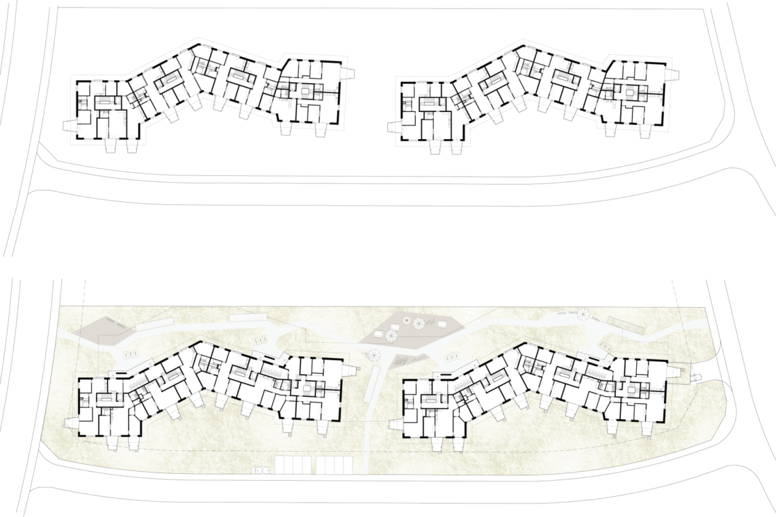 Zwischen den beiden Gebäuden ist ein gemeinschaftlicher Aussen-Aufenthaltsraum geplant, der Baubestand wird so weit als möglich erhalten und auch sonst wird im Projekt Wert auf die Erfüllung der Kriterien des Labels SNBS in Bezug auf Nachhaltigkeit, Gesellschaft und Wirtschaft gelegt.